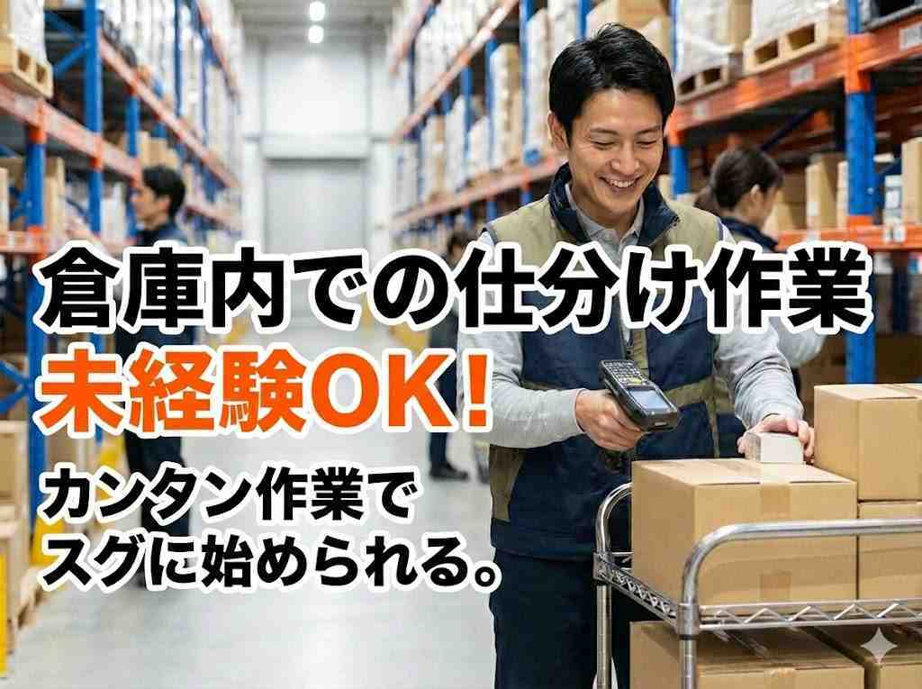 物流倉庫内で行う仕分け作業のお仕事です。届いた商品や荷物を、決められたルールに沿って仕分けていきます。配属工程は入社後に決定され、基本的には同じ工程を継続して担当します。