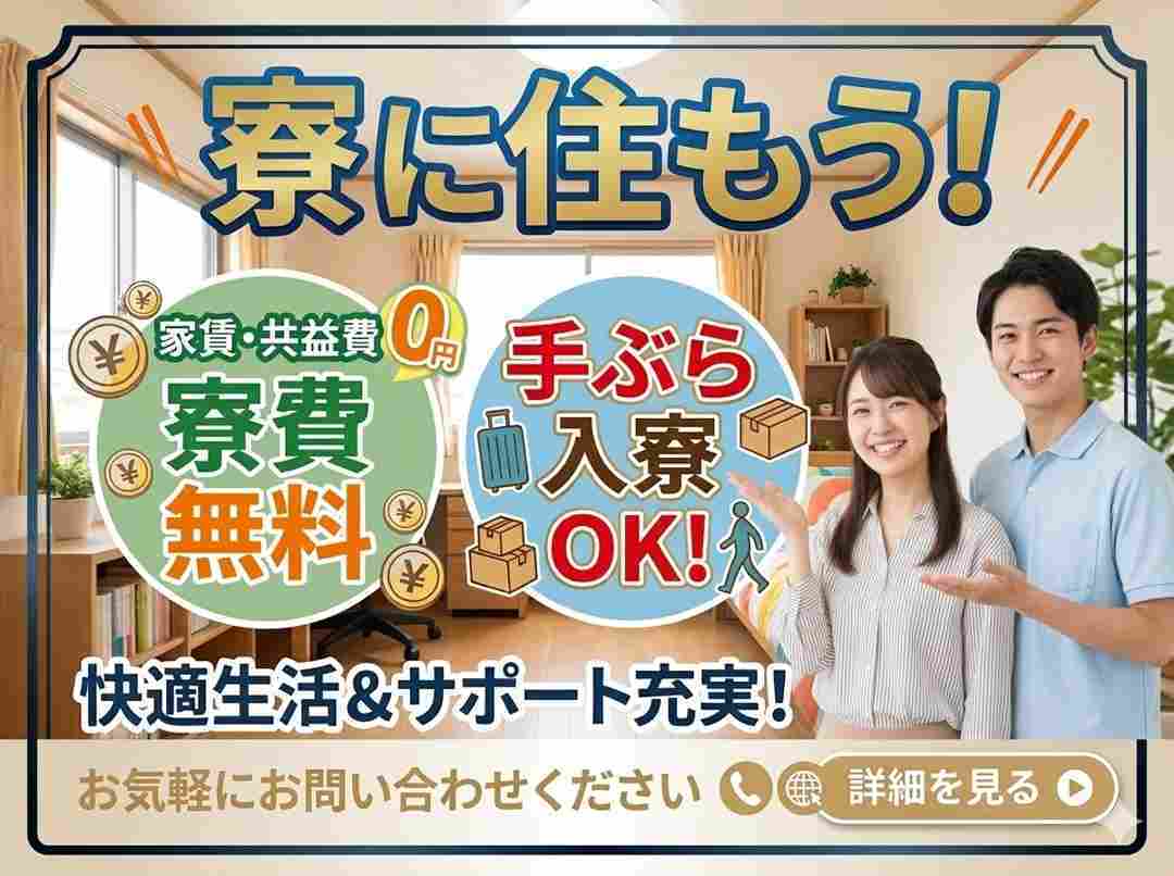 寮が用意されており、入寮しながら働ける環境です。住まいを探す手間を減らしながら仕事をスタートできるため、新しい環境で働きたい方や遠方からの応募にも対応しやすい条件です。