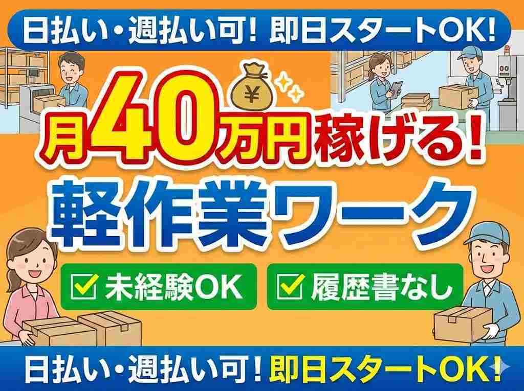 | 応募資格 | ◆経験・資格・学歴は一切必要ありません。 「工場は初めて」「学歴に自信がない」「ブランクが長い」 そんな方でも、安心して飛び込める環境をご用意しています。 ◆ 未経験でも大丈夫!“やったことがない”を歓迎します! 今働いているスタッフのほとんどが、未経験からスタートしています。 元飲食・販売・営業、さらにはナイトワーク(キャバクラ・ホスト・バー)からの転職組も多数。 マニュアル完備&丁寧な研修があるので、経験ゼロでも無理なく始められます。 ◆ 学歴・職歴・転職回数は一切不問 「履歴書に書ける経歴が少ない…」 「転職回数が多くて不安…」 そんな心配はいりません。 当社は人柄と“これから”を重視してご紹介しています。 ◆ フリーターさん・ブランクが長い方も歓迎 ・長い間働いていなかった ・直近の仕事が短期ばかり ・初めての正社員を目指したい どんな状況でも歓迎します。 あなたのペースに合わせた職場をご提案します。 ◆ 住み込み希望の方も大歓迎!全国から応募OK 「今、住む場所がない」「手持ちが少ない」 そんな状況でも問題ありません。 寮費無料の職場・即日入寮OKの案件も多数あり、遠方からの応募もスムーズに対応できます。 カップル入寮OKの職場もあるため、2人での応募も歓迎しています。 ◆ コミュニケーションが苦手な方も働きやすい職場が多いです ・黙々と作業したい ・人間関係が負担になりにくい仕事がいい という方に向いているポジションが豊富です。 接客なし・電話対応なしの職場もご案内できます。 ◆ こんな方にもおすすめです ・すぐ働ける仕事を探している ・安定した収入を得たい ・正社員登用を目指したい ・単純作業が好き ・軽作業で体の負担を減らしたい ・夜勤でガッツリ稼ぎたい ・日勤のみで生活リズムを整えたい ◆ 応募ハードルはとにかく低めです ・履歴書不要 ・オンライン面談OK ・即日面接→即日勤務も可能 ・勤務開始日の相談OK あなたの希望や不安をしっかり聞いた上で、ぴったりの職場をご紹介します。 どんな理由の転職でも大歓迎。まずは気軽にご相談ください。 ※上記は一例です。配属先や求人により条件は異なります。 ※各種規定あり |